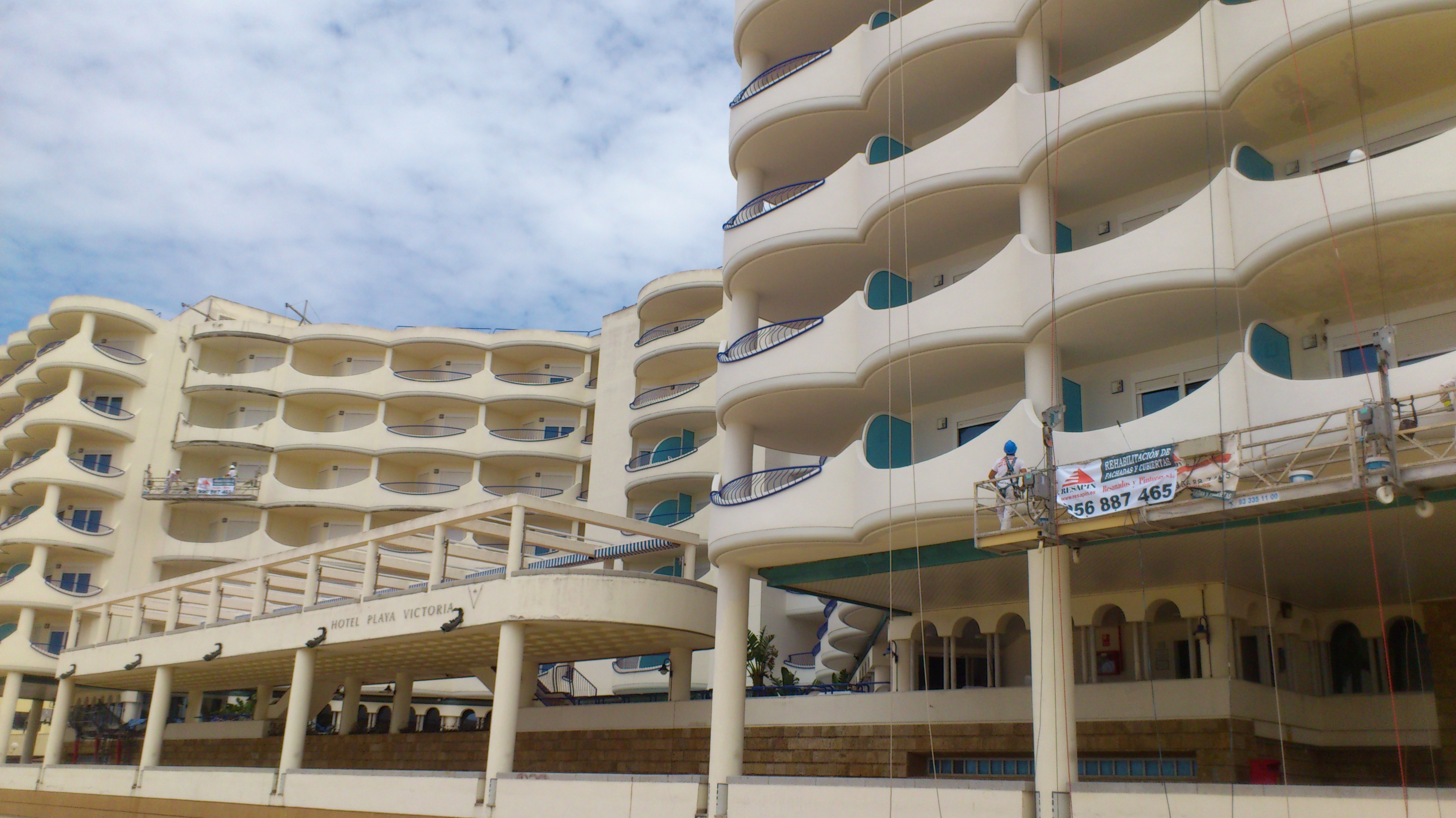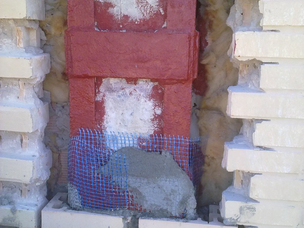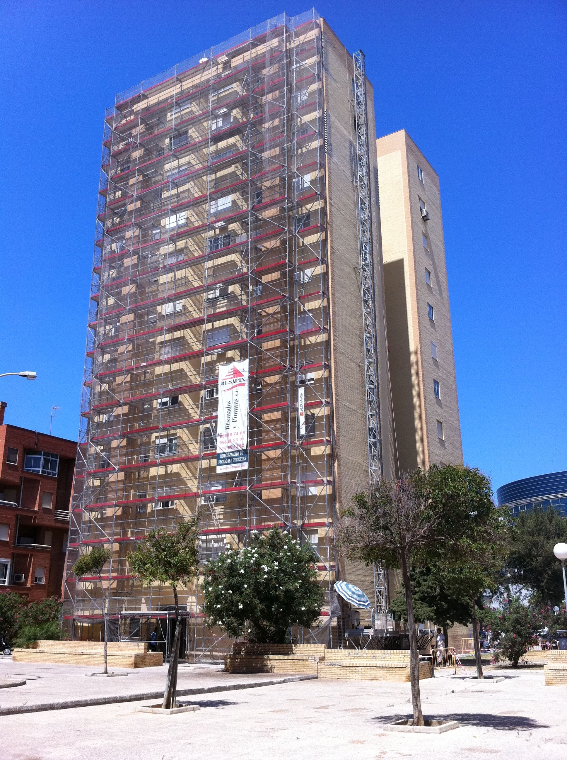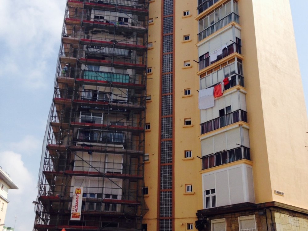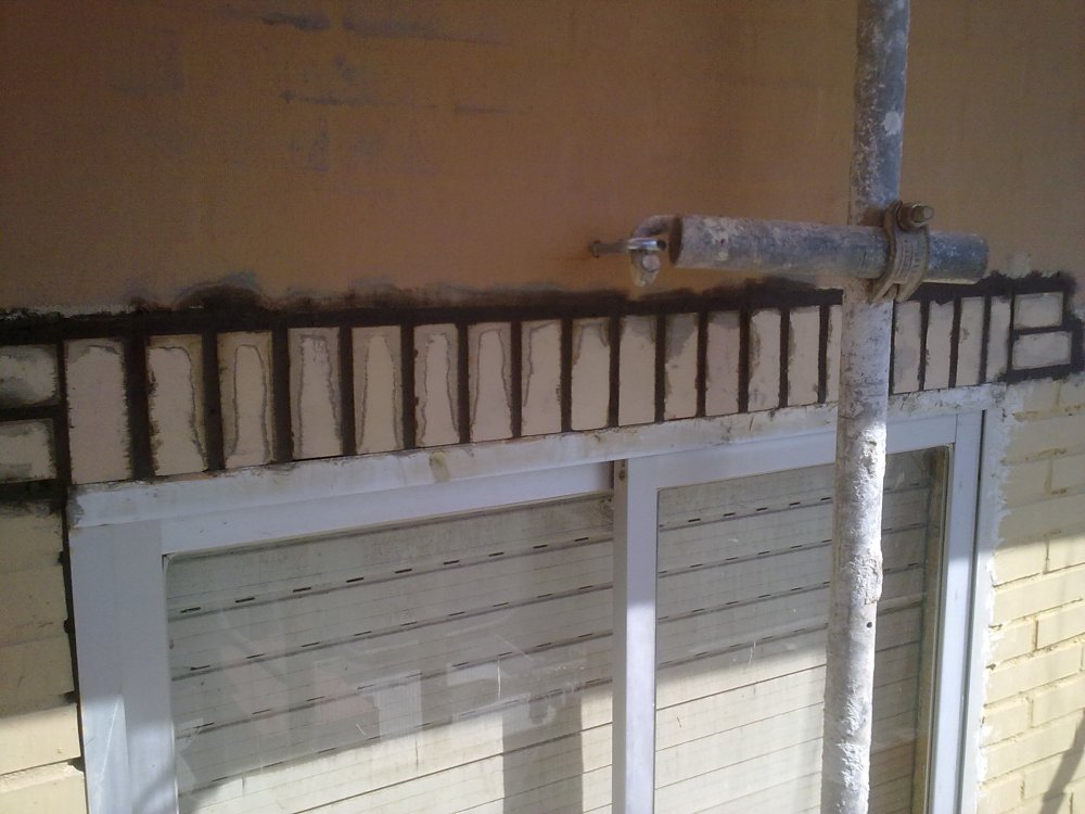 Reparación de elementos estructurales en pilares y forjados del edificio formado por: demolición del emparchado de ladrillo visto, tratamiento de las estructuras con morteros de SIKA, enfoscados y formación del nuevo emparchado de ladrillo visto.