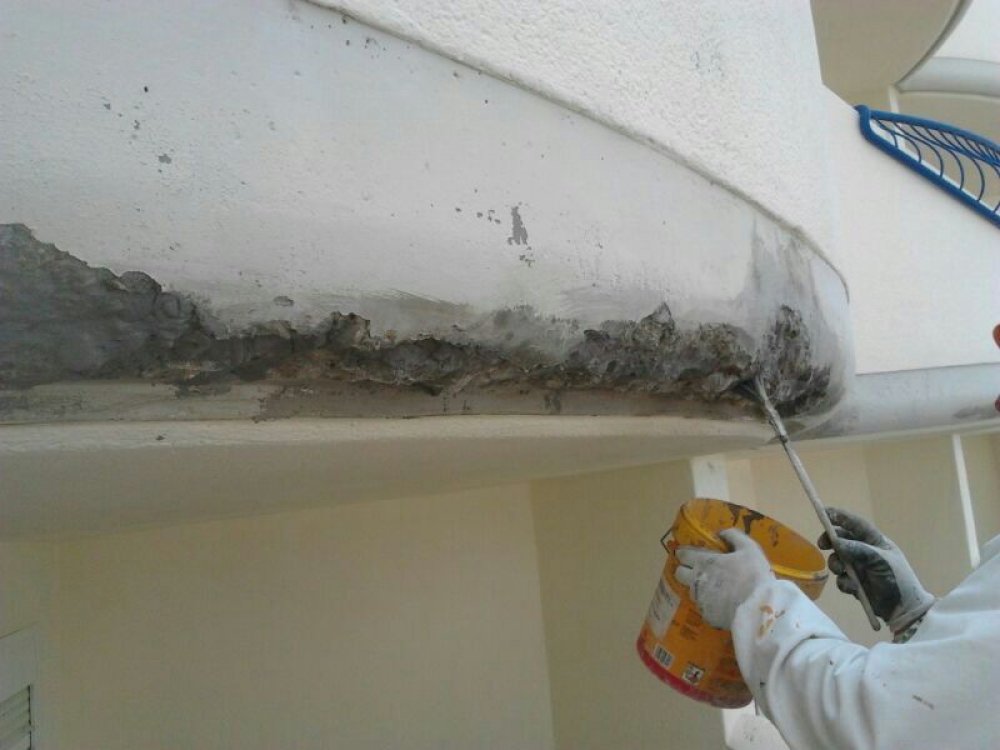 Reparación de elementos estructurales del hormigón dañado, tratamiento de las armaduras con morteros de SIKA.